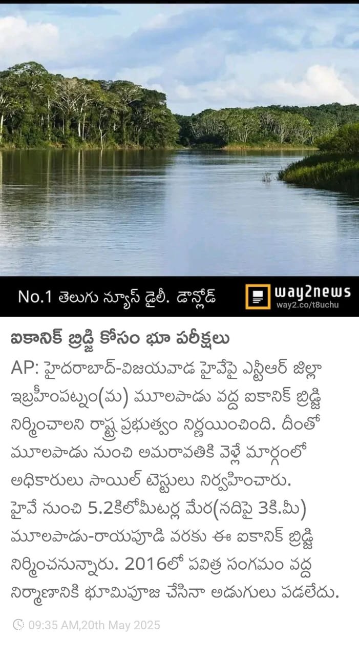 AP: The state government has decided to construct an iconic bridge at Moolapadu in Ibrahimpatnam mandal of NTR district, on the Hyderabad–Vijayawada highway. As part of this, officials carried...